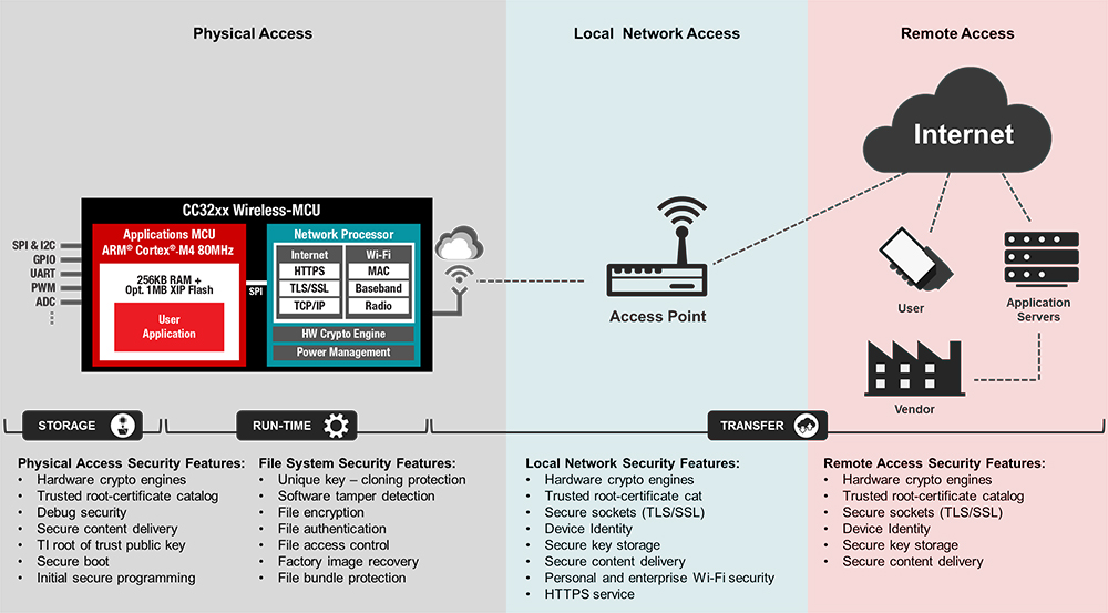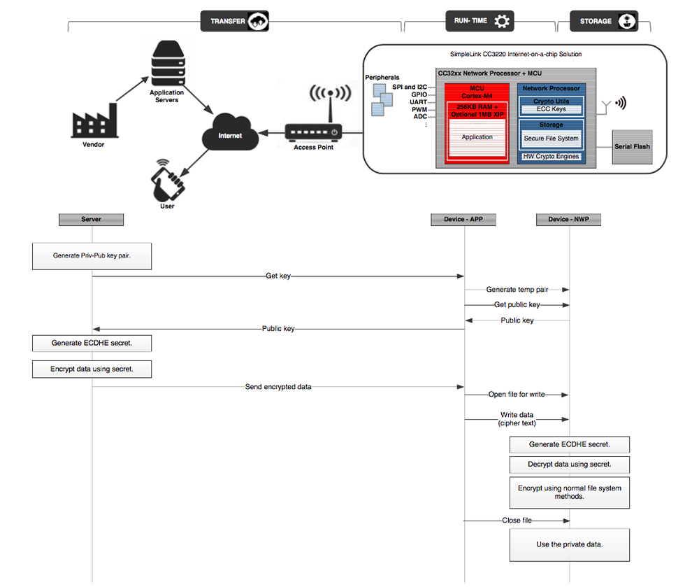 PKI transactions can be compute intensive, which can make it hard to implement in embedded systems. However, the use of dedicated coprocessors will alleviate the burden of processing the keys and encrypted data from the host processor. Such a coprocessor is found on the Texas Instruments SimpleLink CC3220 wireless microcontroller. The CC3220 solution combines a Wi-Fi transceiver, TCP/IP networking and crypto engines with a microprocessor based on the ARM® Cortex®-M4 MCU.