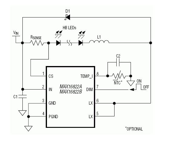 MAX16822 High-Voltage, High-Efficiency LED Drivers with Integrated MOSFET